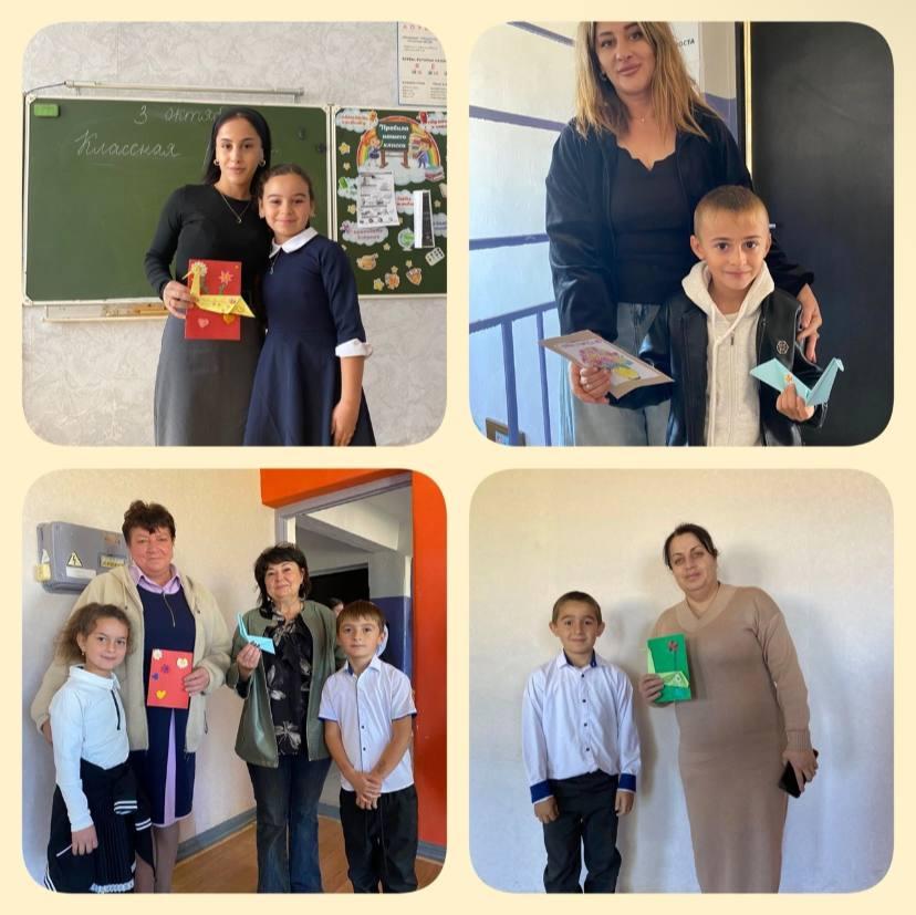 Активисты, сделали своими руками пеликанов в технике оригами и написали слова благодарности учителям.